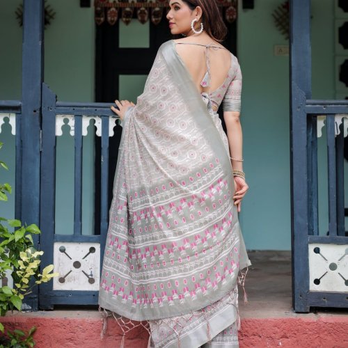 Floral Linen Cotton Saree