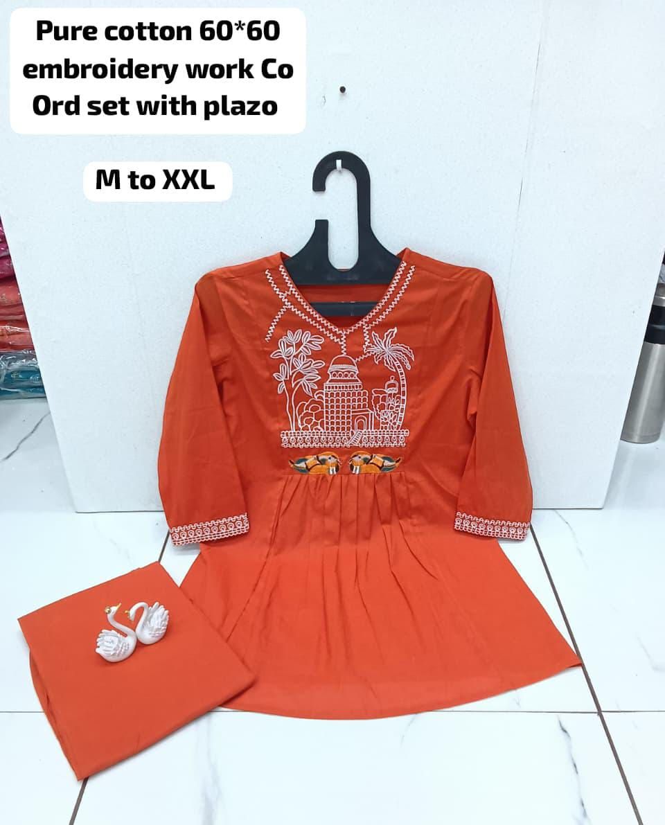 Leading Manufacturers, Exporters, Wholesaler and Retailer of Designer Embroidered Cotton Co Ord Set, Elegant Cotton Women Co Ord Set, Embroidered Women Cotton Co Ord Set and Women Cotton Embroidered Co Ord Set from Surat.